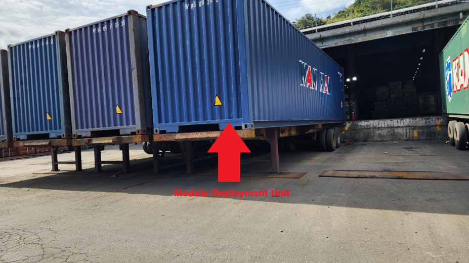 本測試旨在驗證 MN54L-C15 藍牙模組在極端射頻(RF)遮蔽環境下的訊號穿透與連線能力。我們將受測裝置(DUT)安裝於一個大型金屬貨櫃的最尾端內部,並在貨櫃併排的環境中進行連線測試。此情境模擬了工業物聯網(IIoT)應用中常見的嚴苛條件,例如訊號必須穿透金屬結構(如機櫃、牆壁或建築物)。