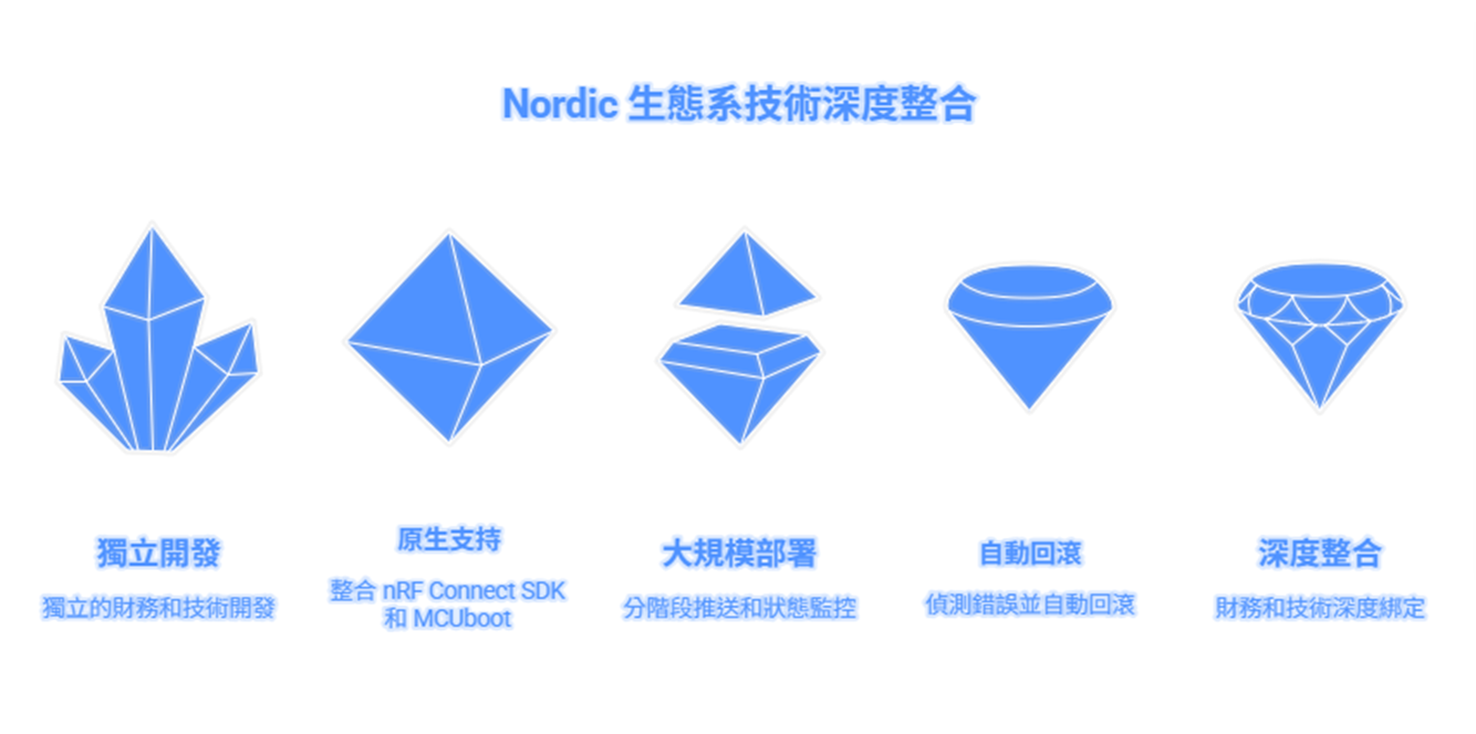 原生支持: 完美整合 nRF Connect SDK 與 MCUboot,支援 nRF52、nRF53、nRF54 及 nRF91 系列。